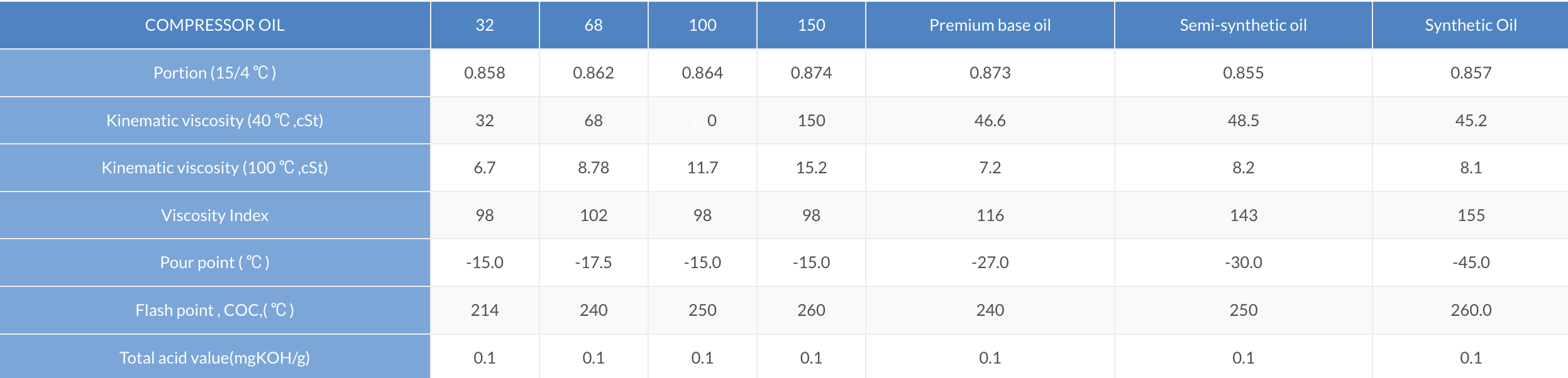 • Compressor oil